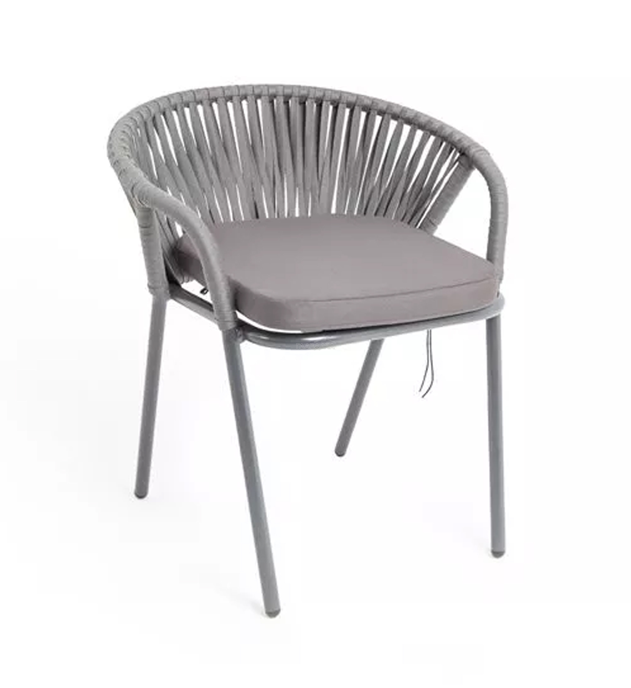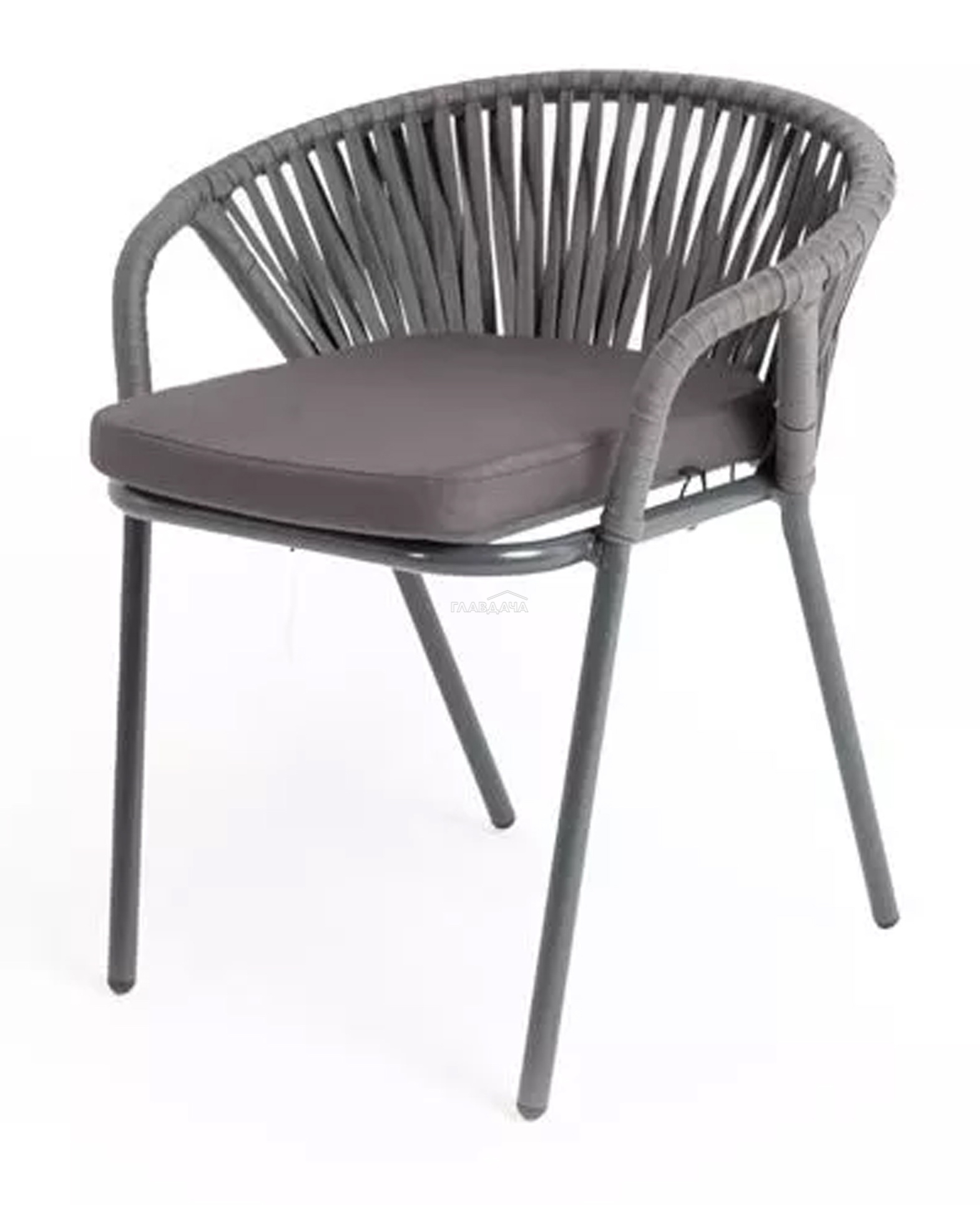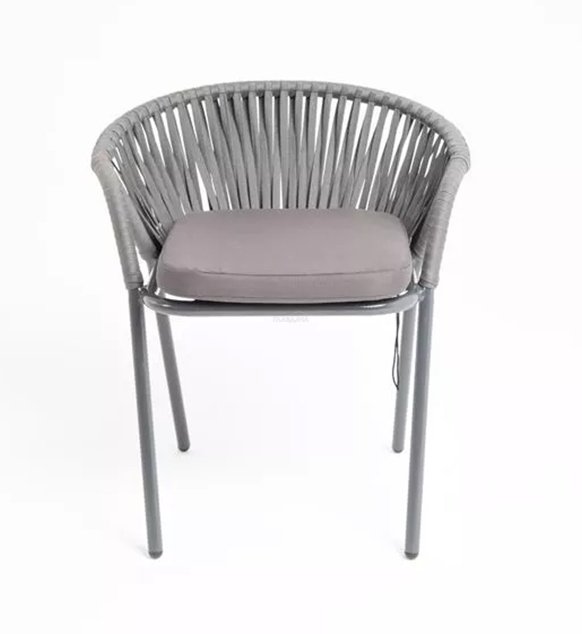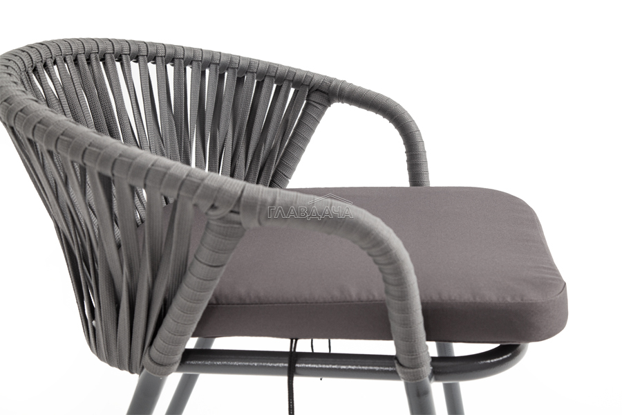 Оплетка выполнена в ручную современным материалом - плоским роупом. Это эластичные синтетические веревки из высокопрочных полиэфирных волокон, предназанченные для изготовления мебели. Цвет оплетки - серый.