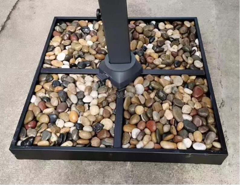 Передвижное основание для зонта с 4-мя вращающимися колесиками, весит 145-150 кг при заполнении камнем.